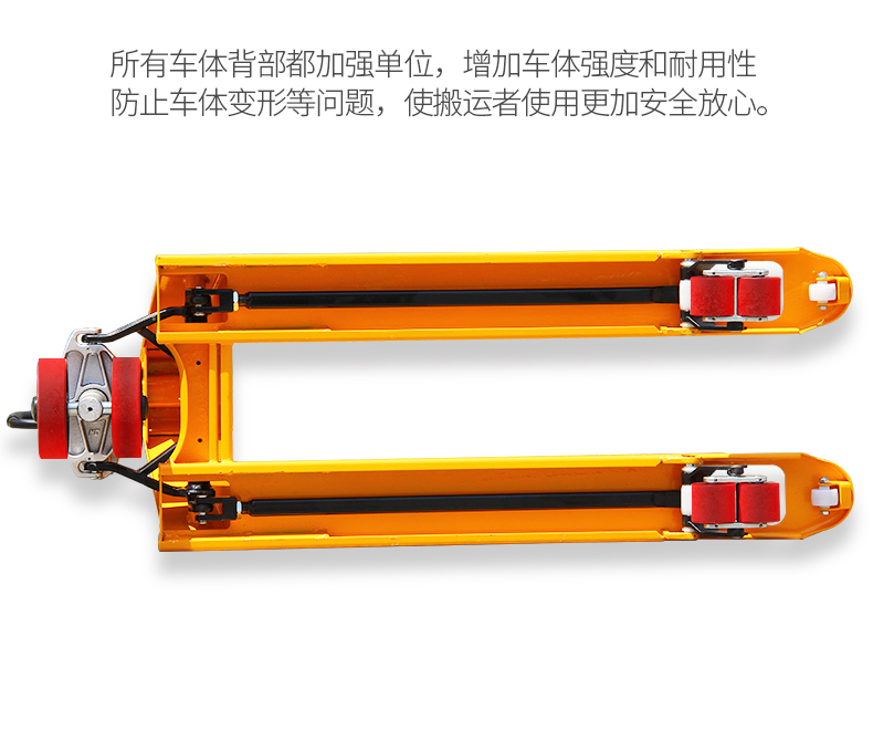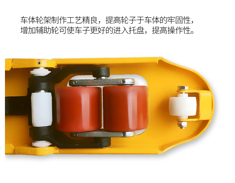 ? 標(biāo)準(zhǔn)雙輪設(shè)計(jì),使貨叉運(yùn)行起來更加靈活,推拉更加輕松。