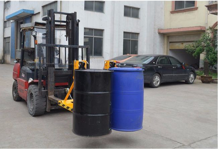 ? 與貨叉連接配有自鎖裝置確保油桶夾在坡度上和顛簸路面使用時不會滑落。